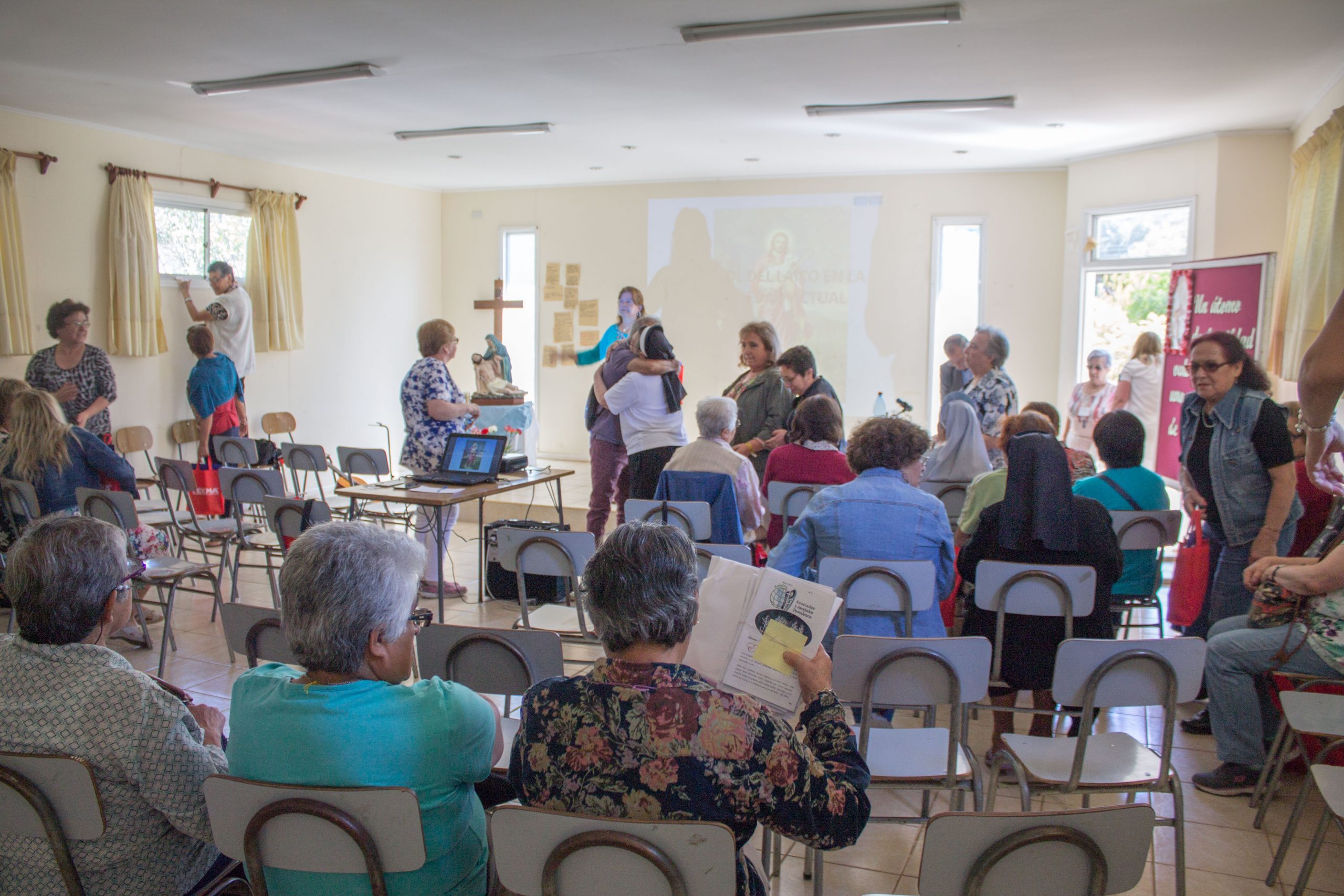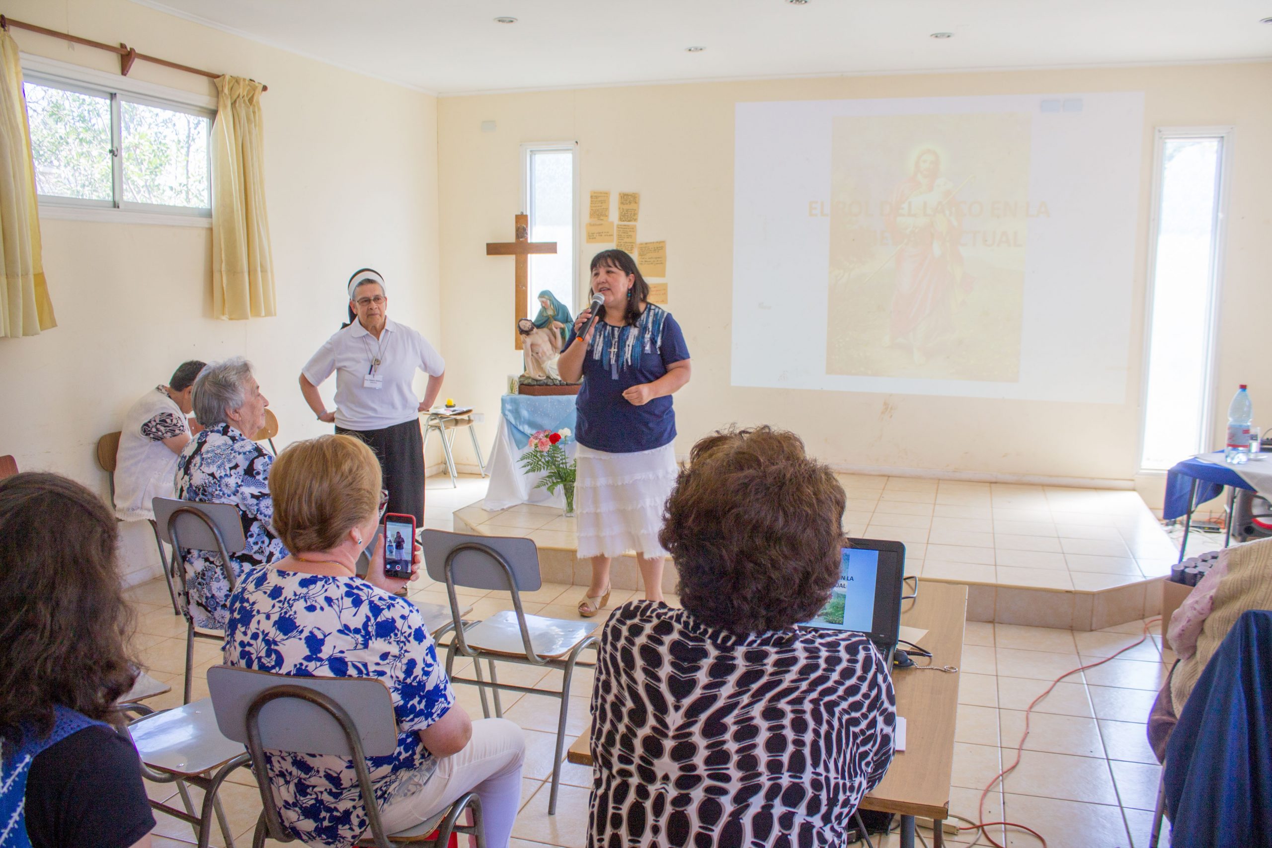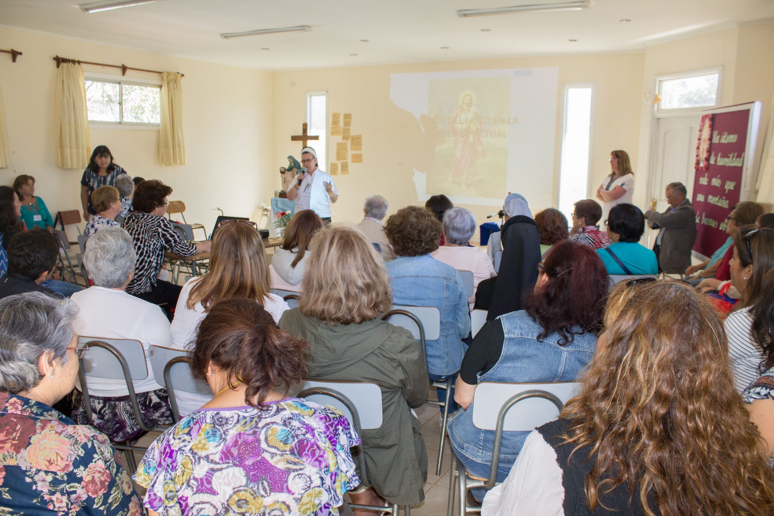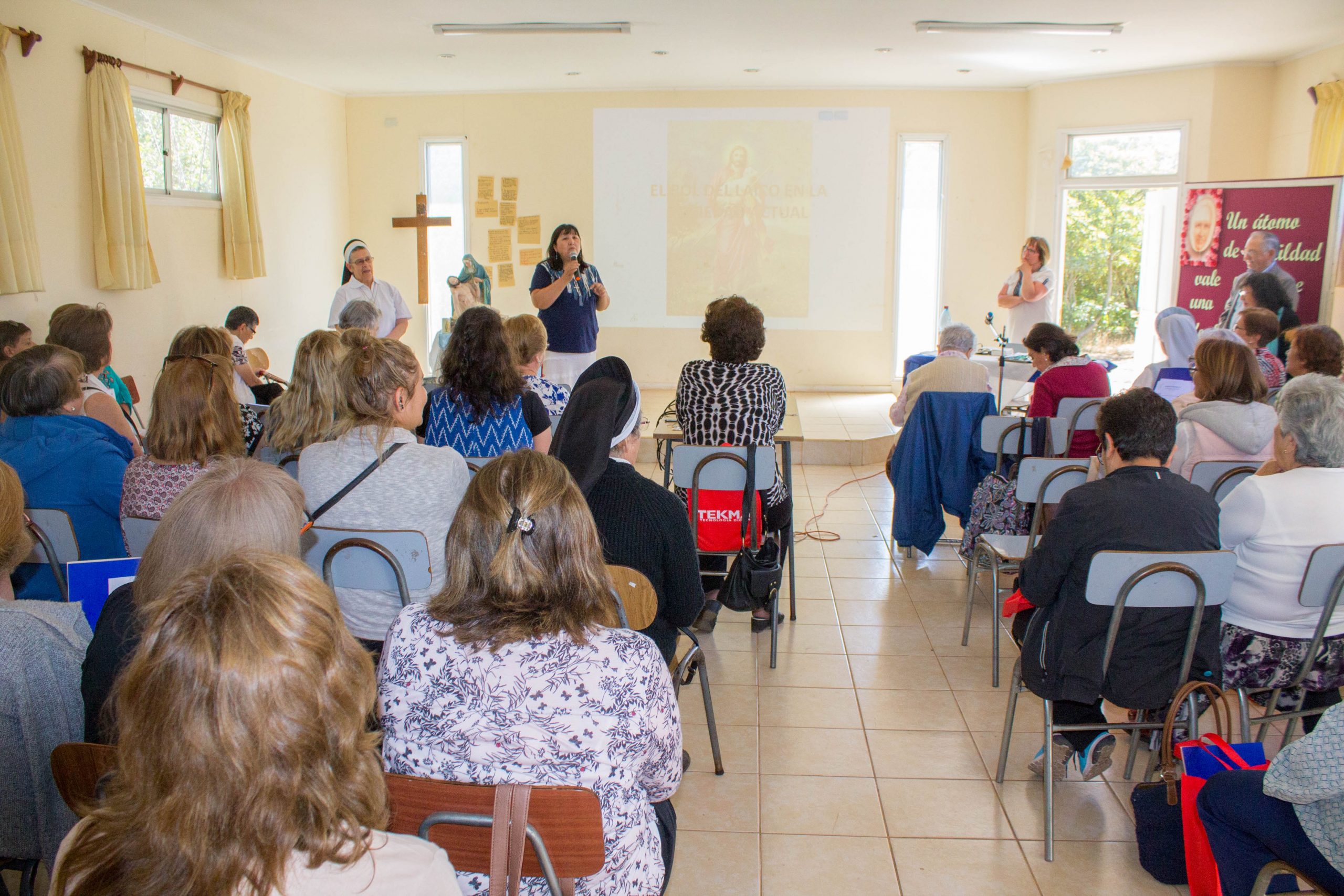 Durante la primera jornada de reflexión, hermana María Antonieta Trimpay junto a hermana Rebeca Malhue participaron del Encuentro a nombre del Consejo Provincial. Ambas compartieron cercanamente con las comunidades, enviando saludos de todas nuestras hermanas e informando a las y los AP de algunos acontecimientos en obras de la Provincia.