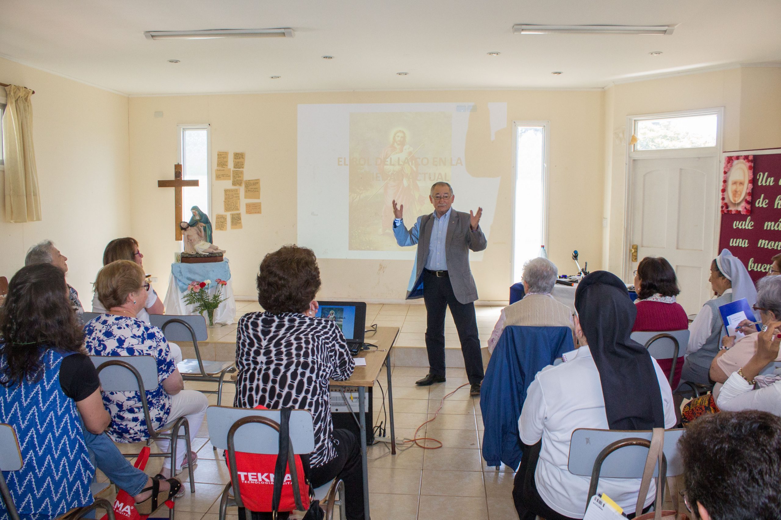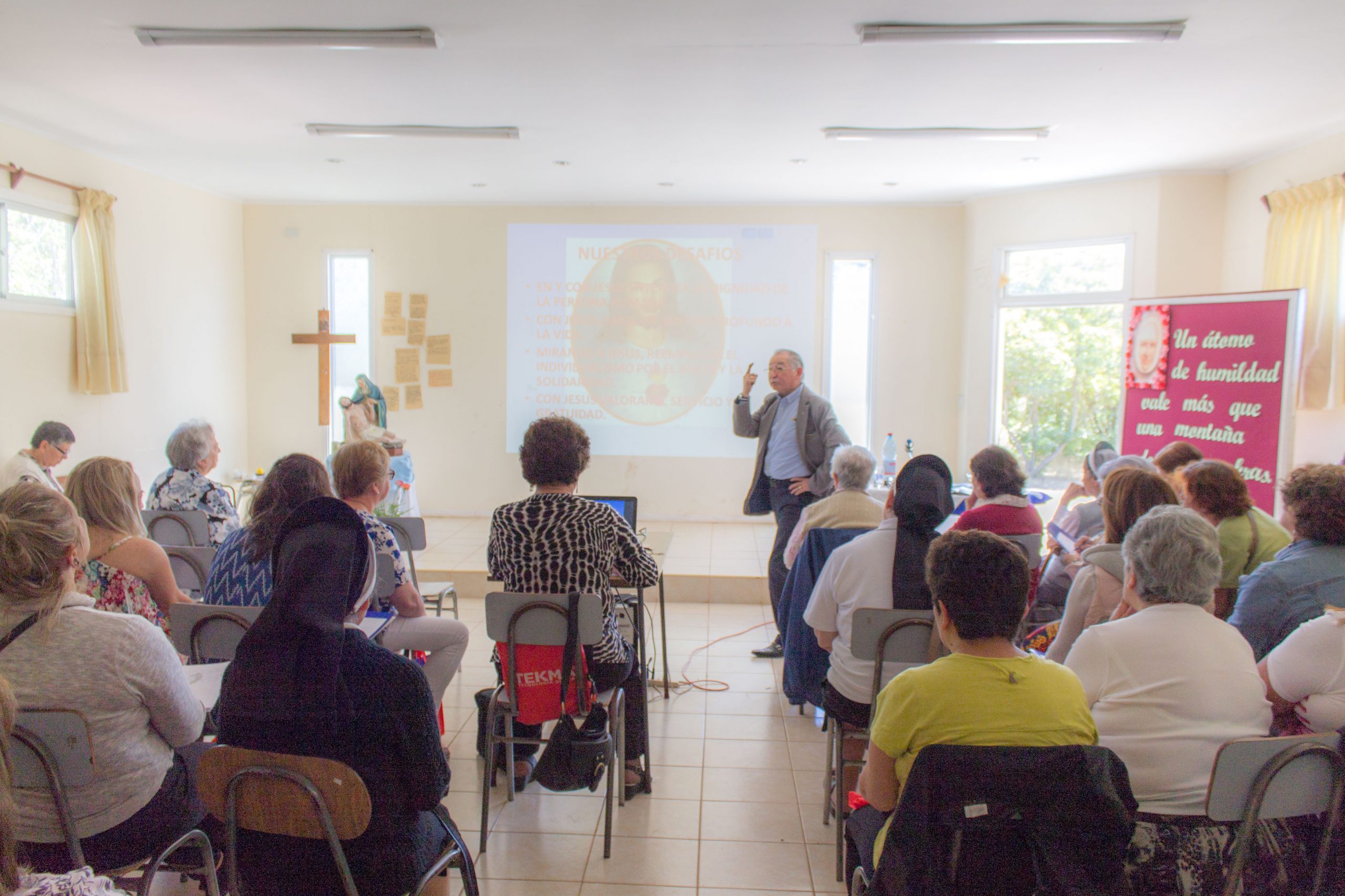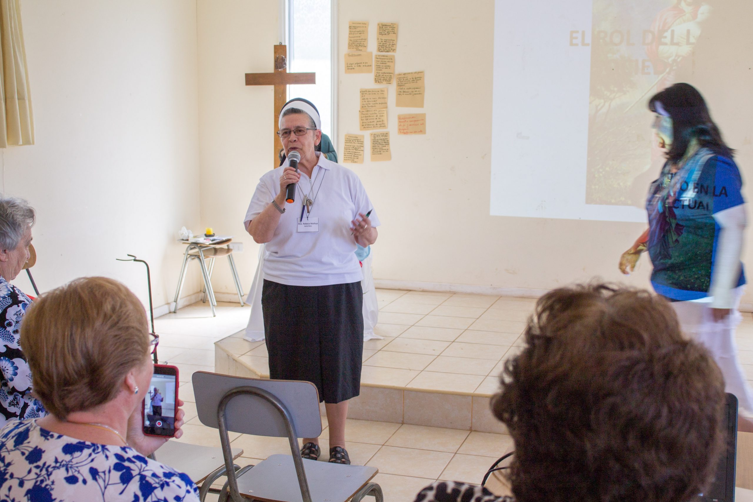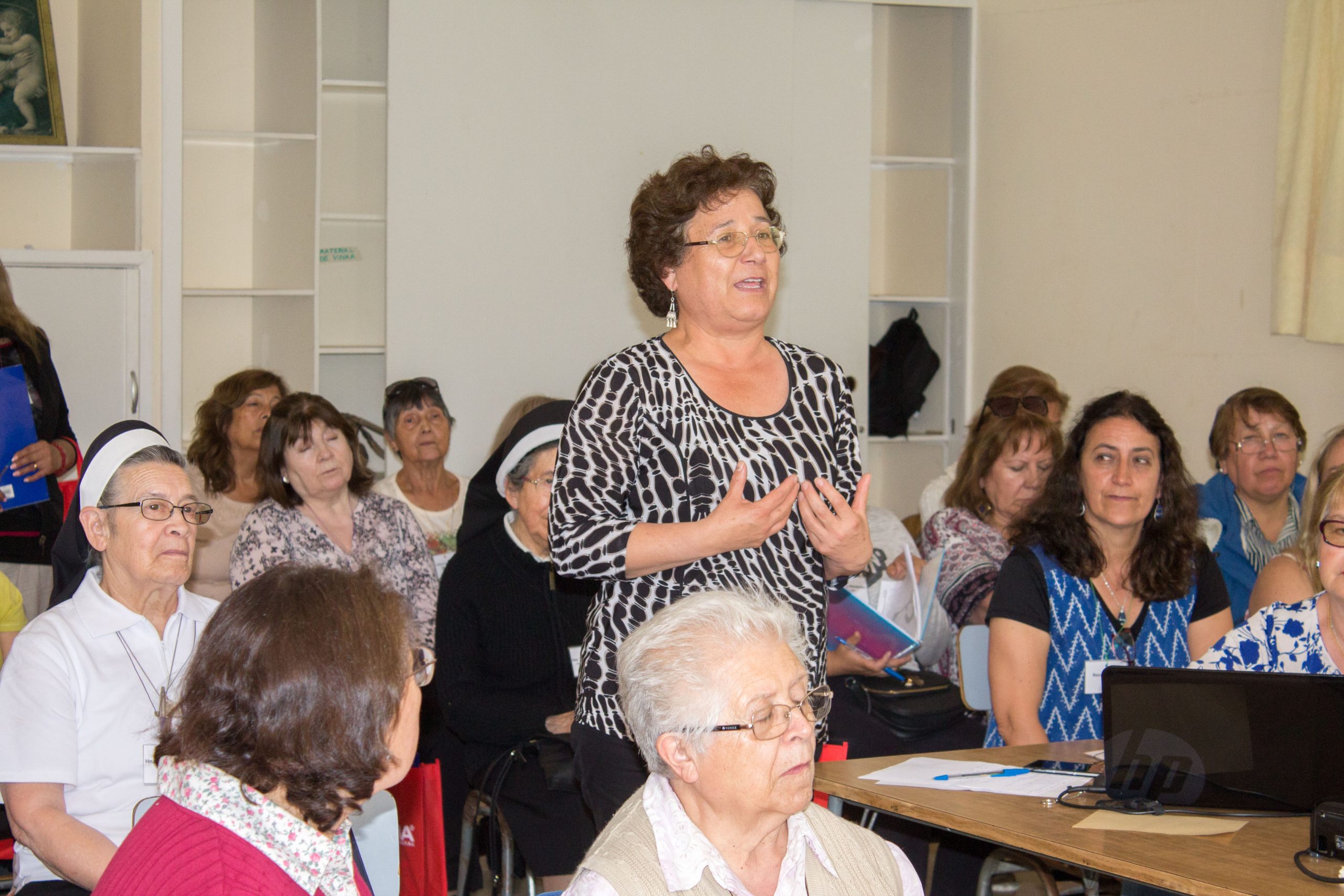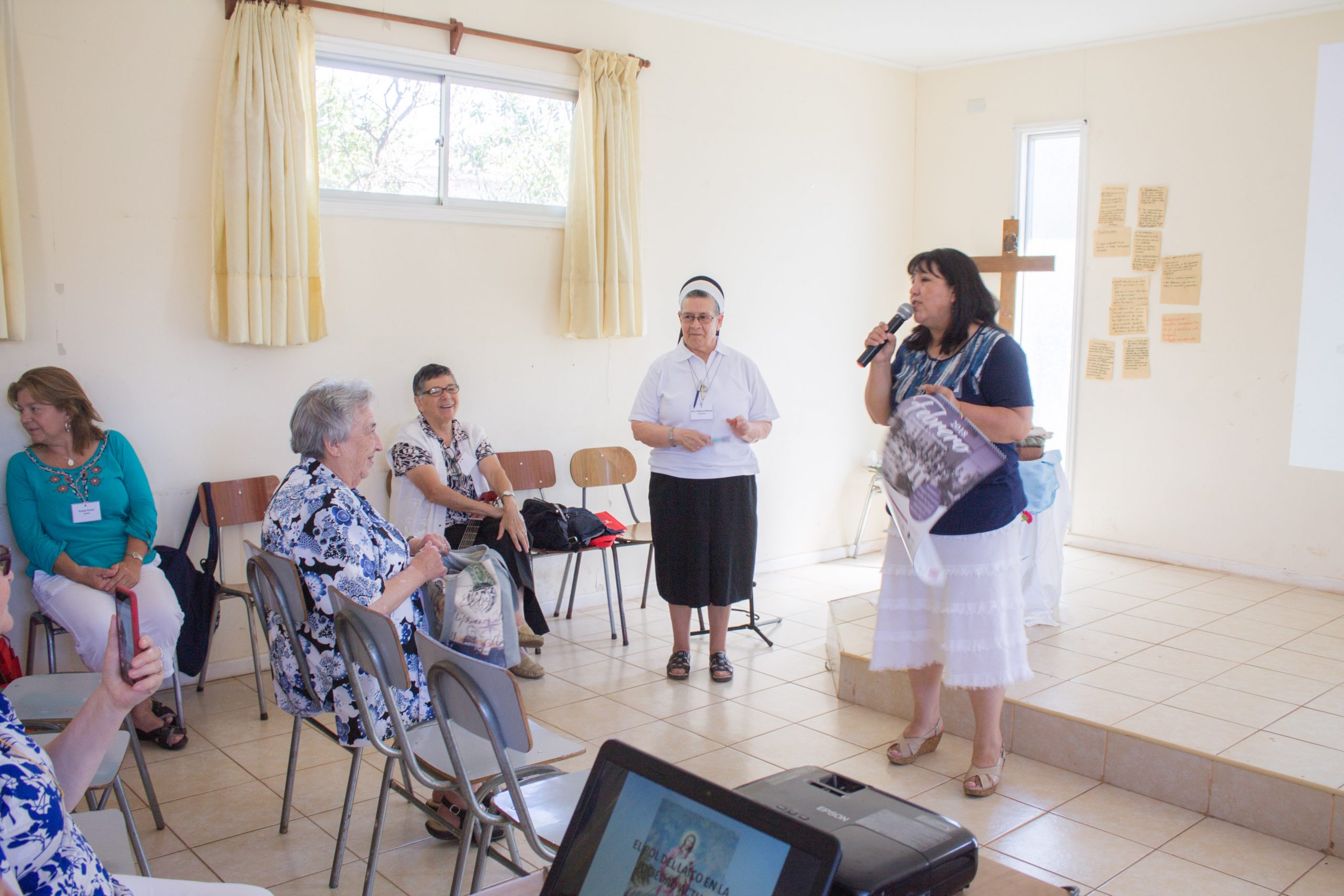 Durante la primera jornada de reflexión, hermana María Antonieta Trimpay junto a hermana Rebeca Malhue participaron del Encuentro a nombre del Consejo Provincial. Ambas compartieron cercanamente con las comunidades, enviando saludos de todas nuestras hermanas e informando a las y los AP de algunos acontecimientos en obras de la Provincia.