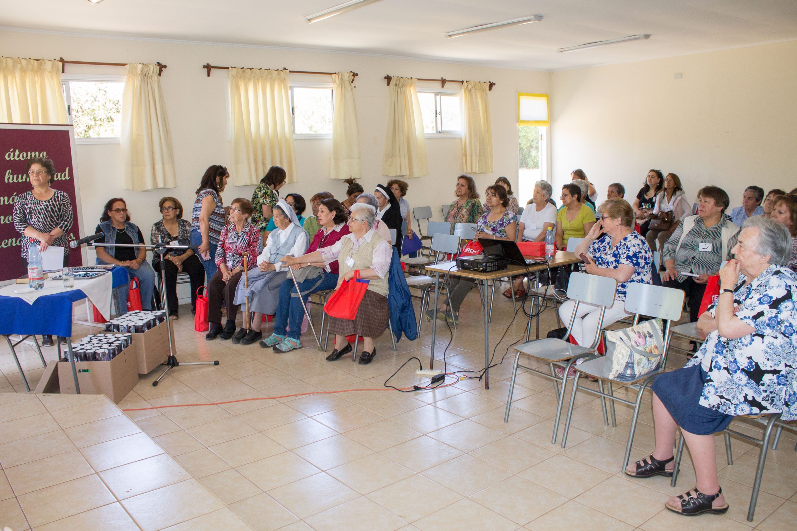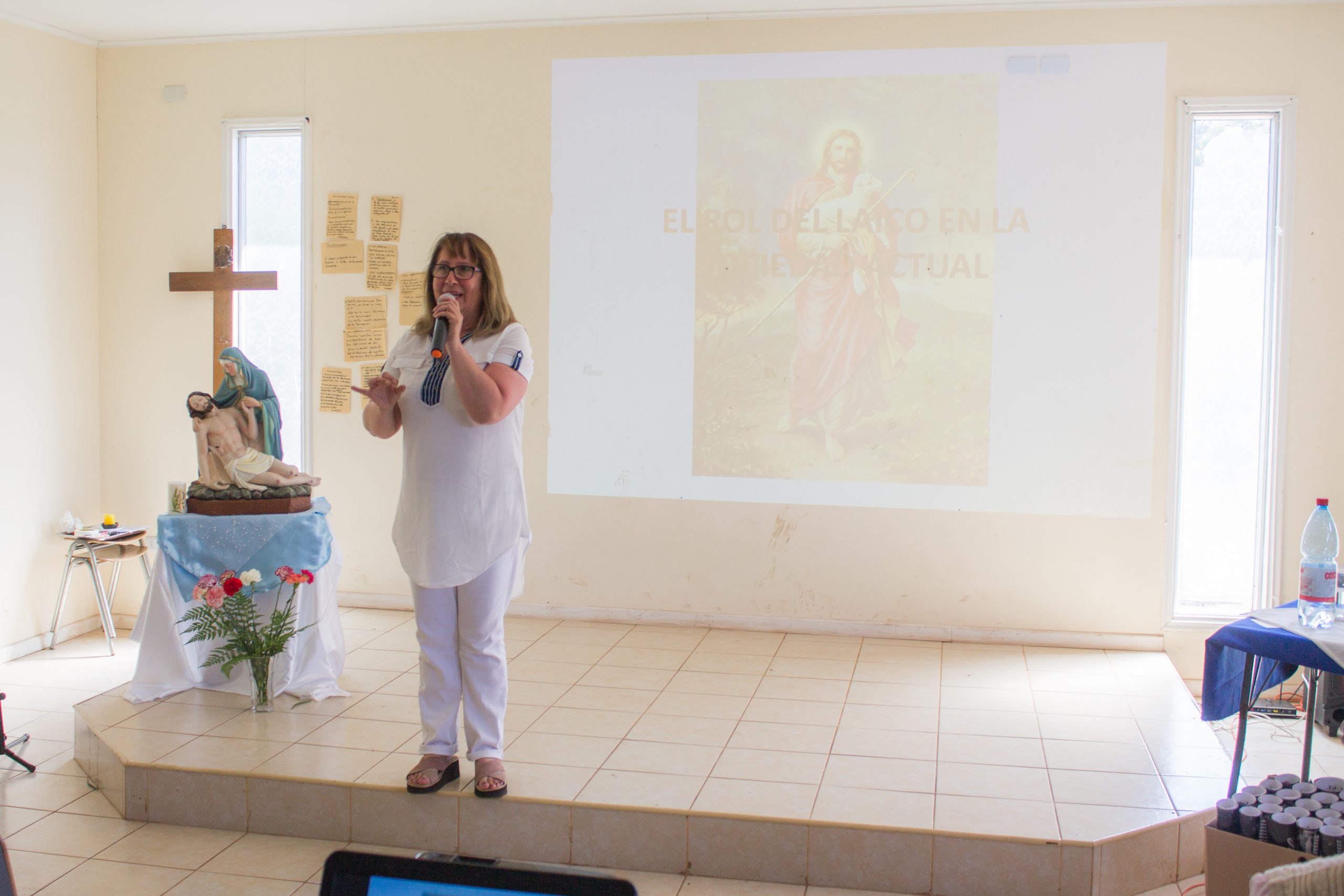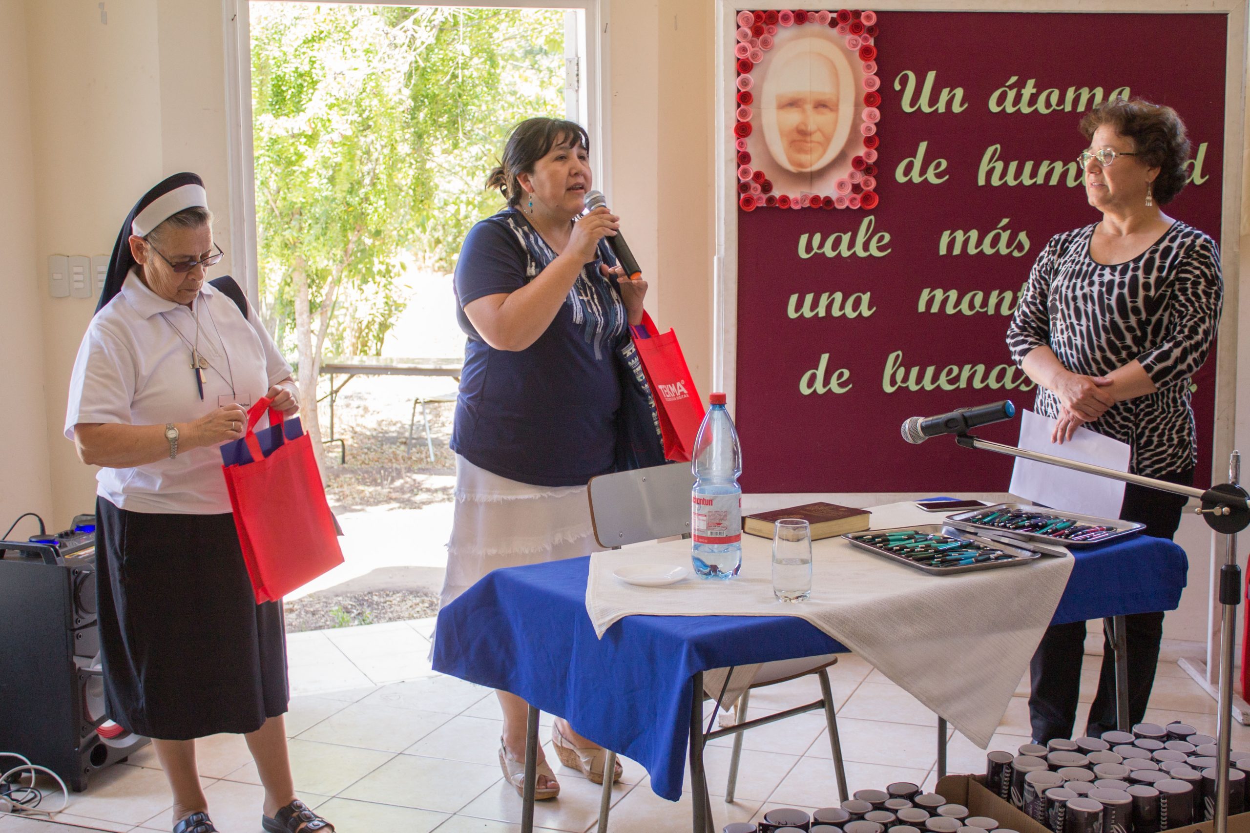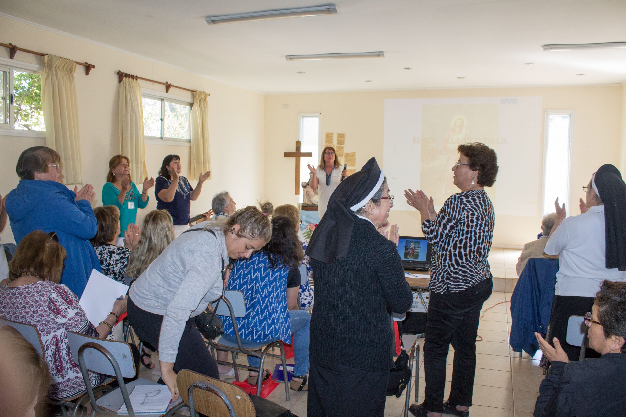 Durante la primera jornada de reflexión, hermana María Antonieta Trimpay junto a hermana Rebeca Malhue participaron del Encuentro a nombre del Consejo Provincial. Ambas compartieron cercanamente con las comunidades, enviando saludos de todas nuestras hermanas e informando a las y los AP de algunos acontecimientos en obras de la Provincia.