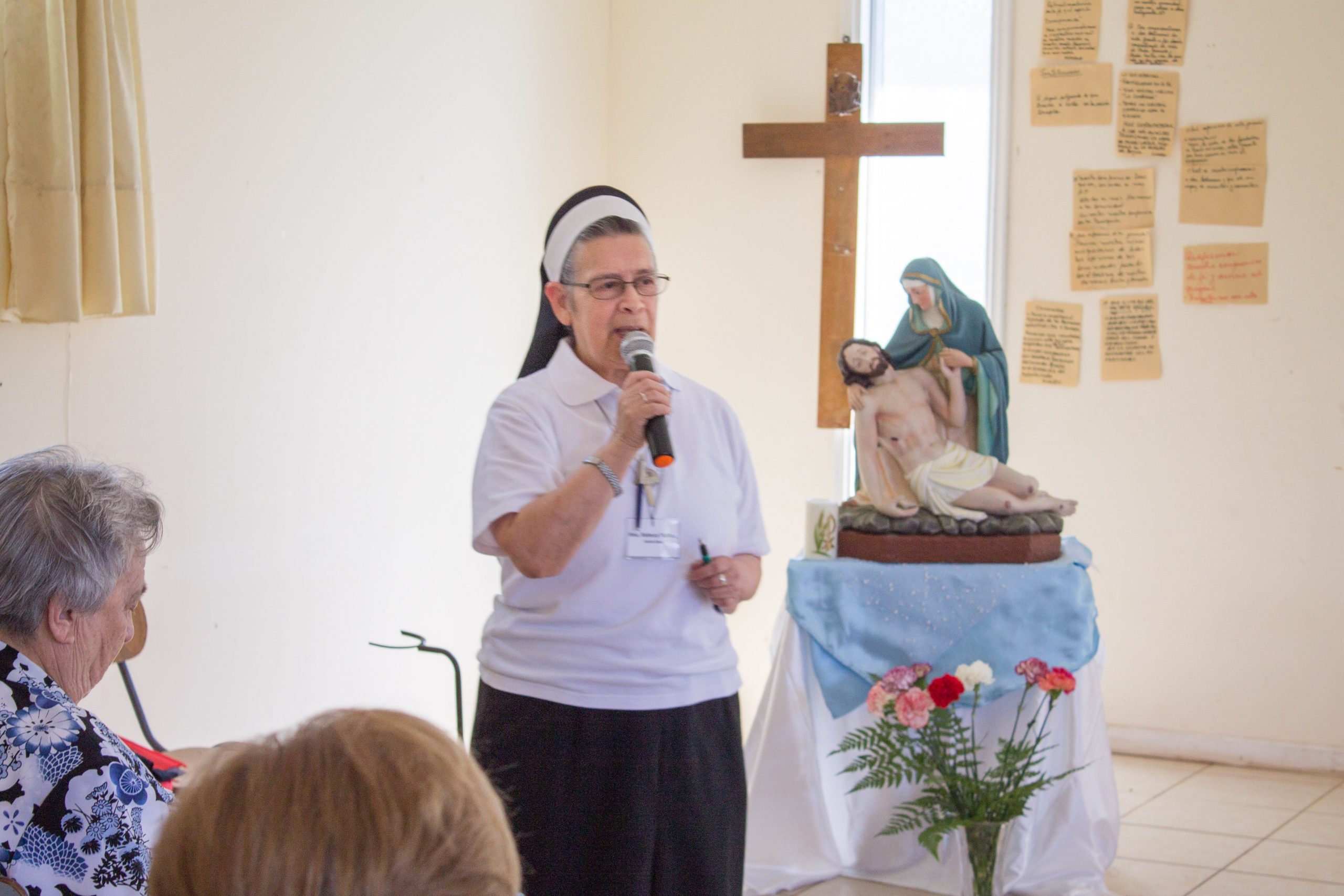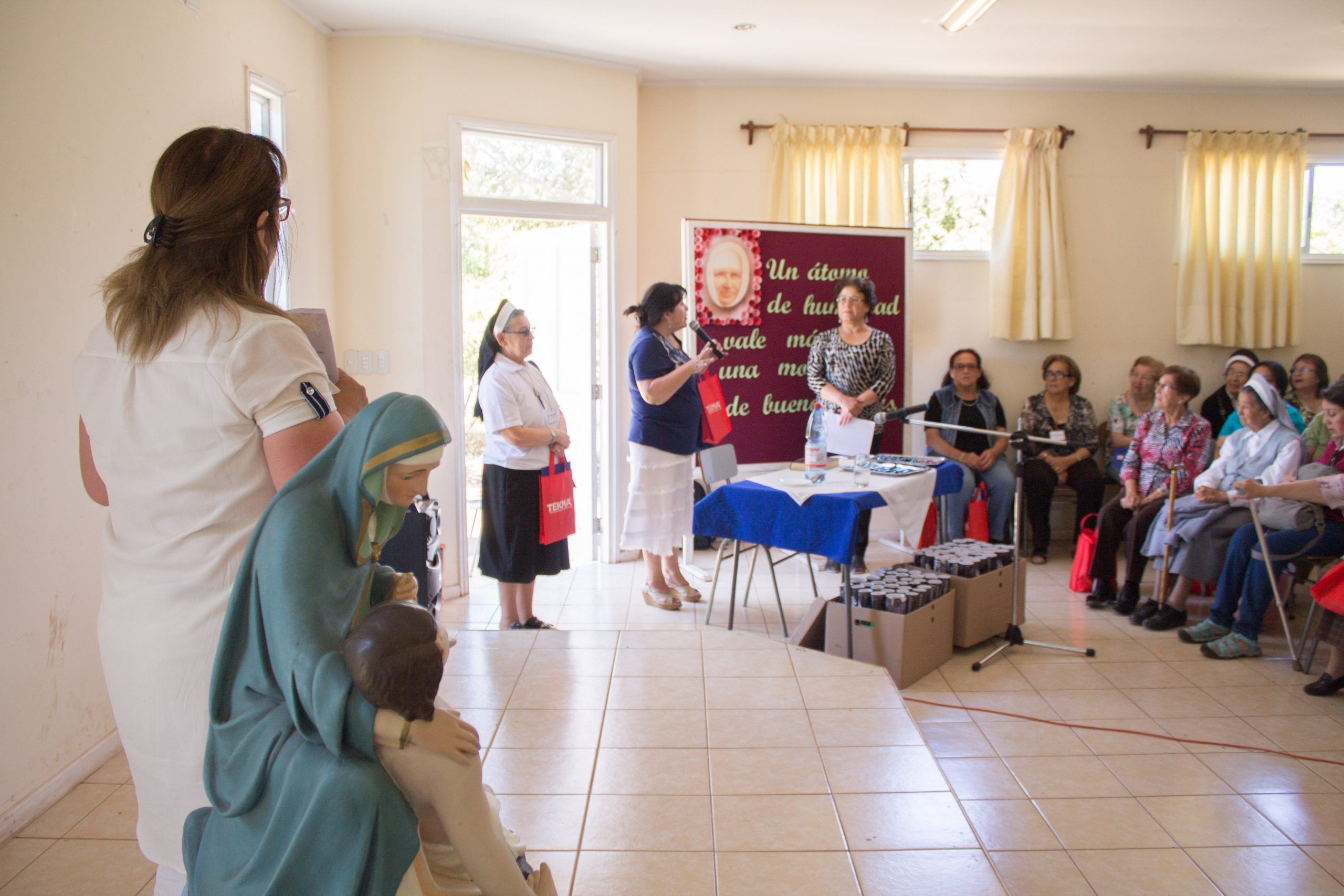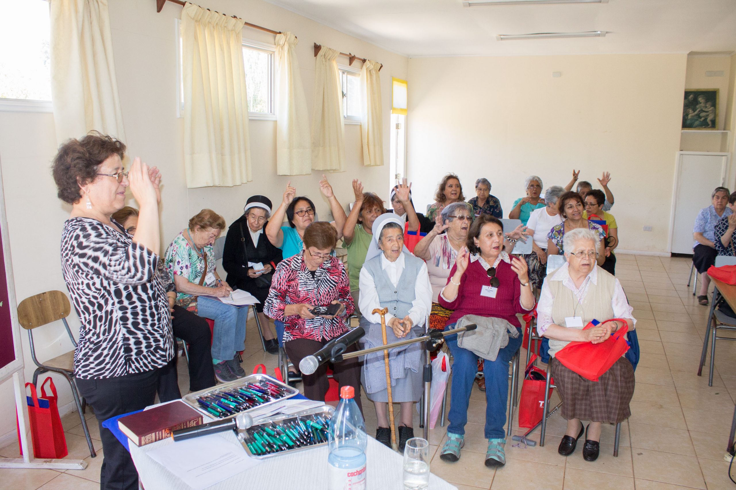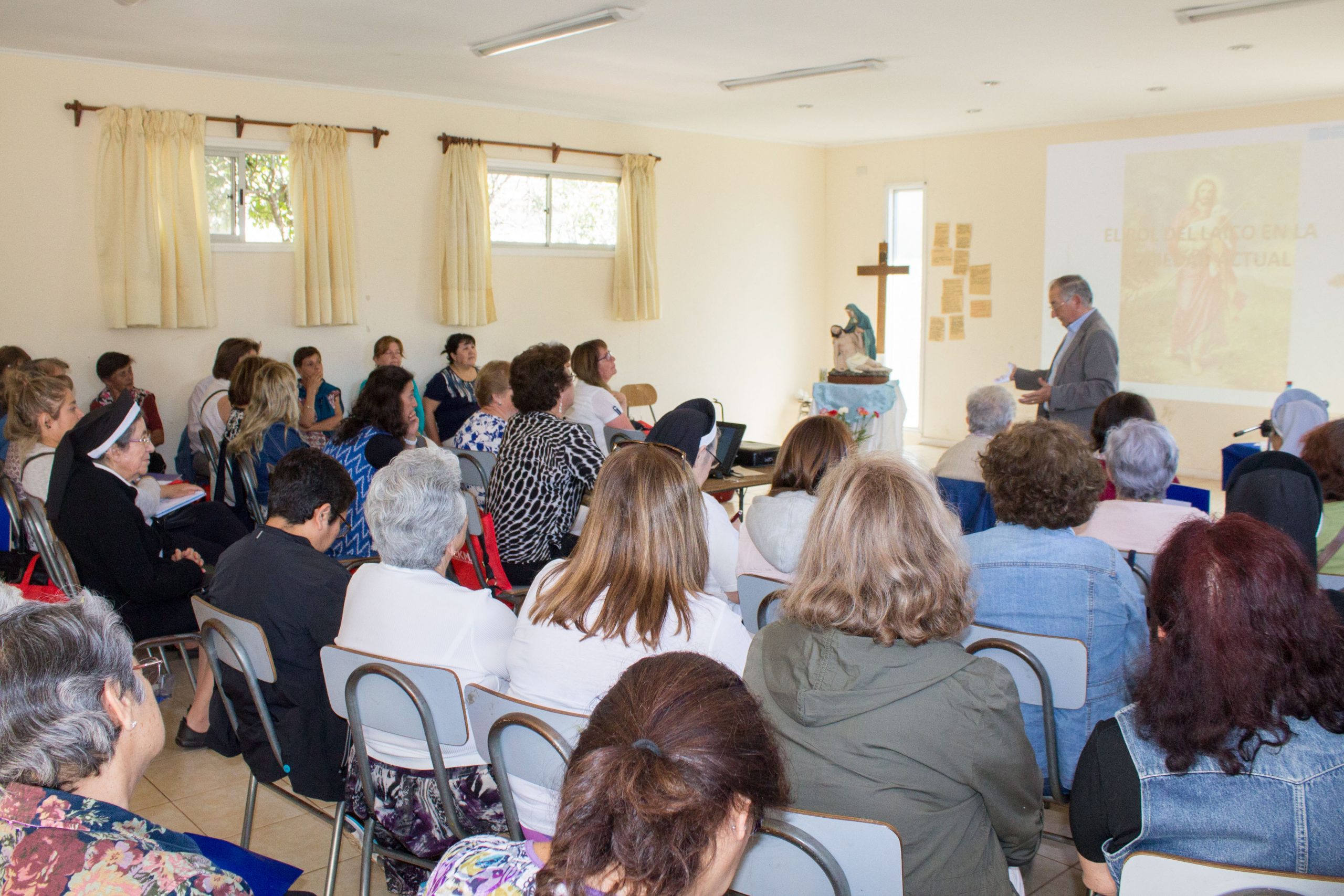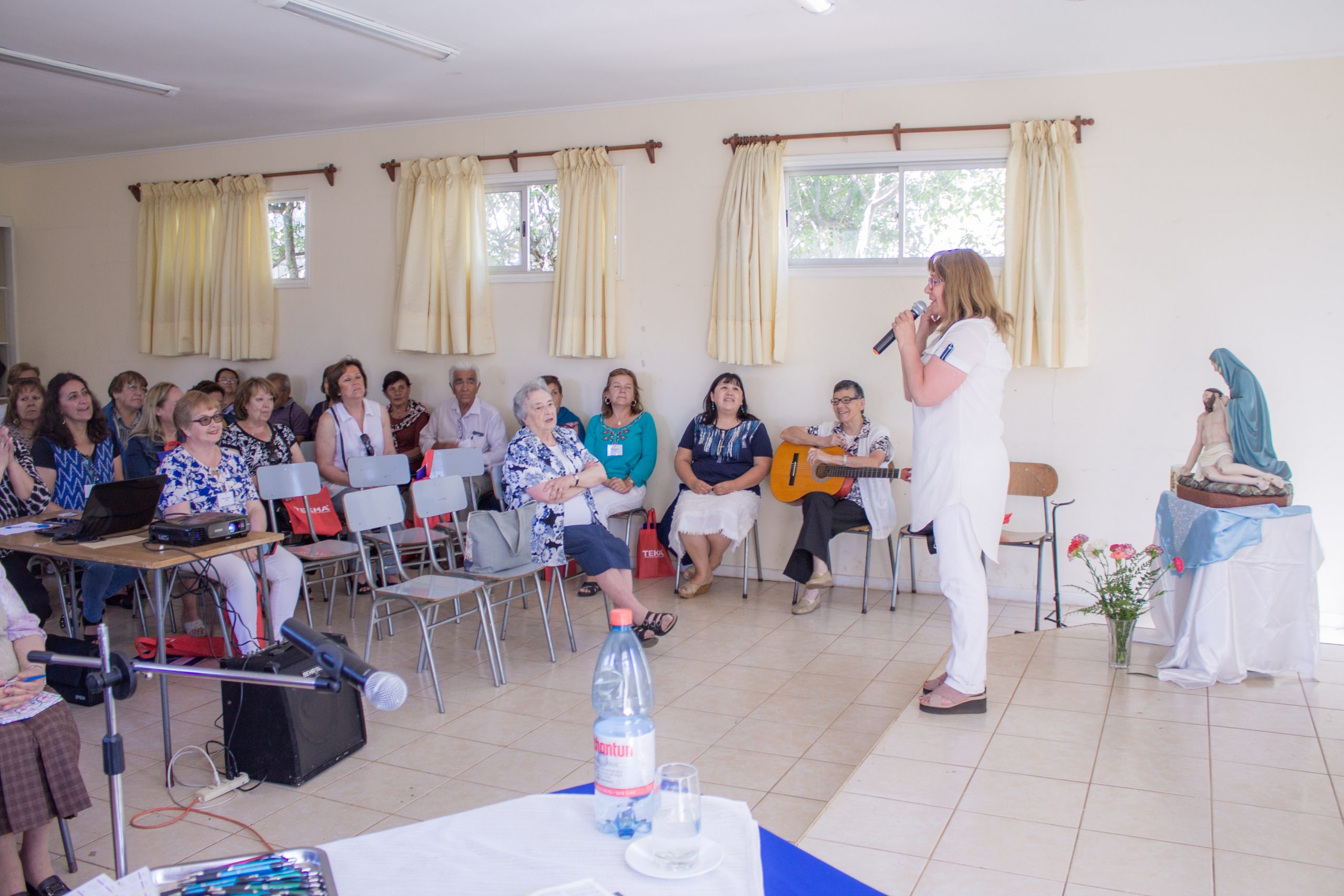 Durante la primera jornada de reflexión, hermana María Antonieta Trimpay junto a hermana Rebeca Malhue participaron del Encuentro a nombre del Consejo Provincial. Ambas compartieron cercanamente con las comunidades, enviando saludos de todas nuestras hermanas e informando a las y los AP de algunos acontecimientos en obras de la Provincia.
