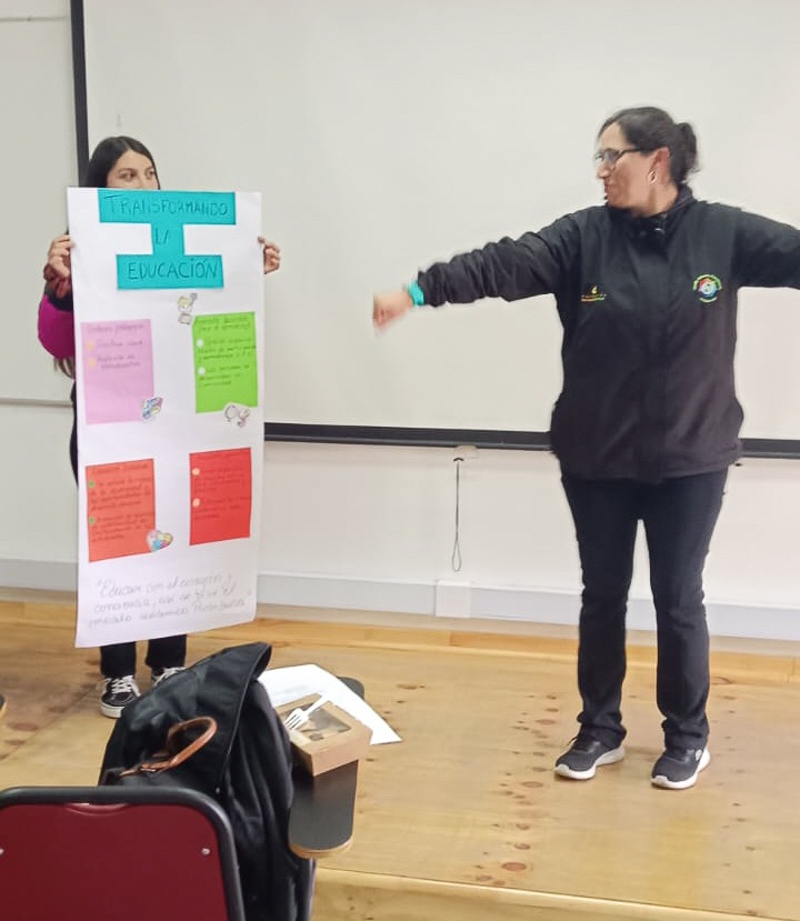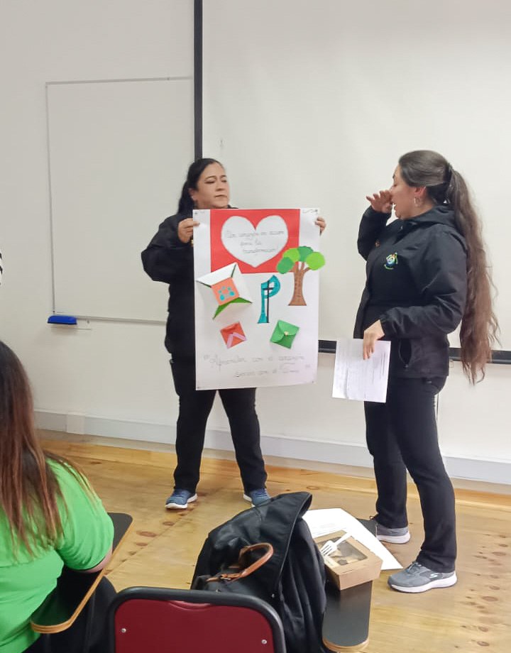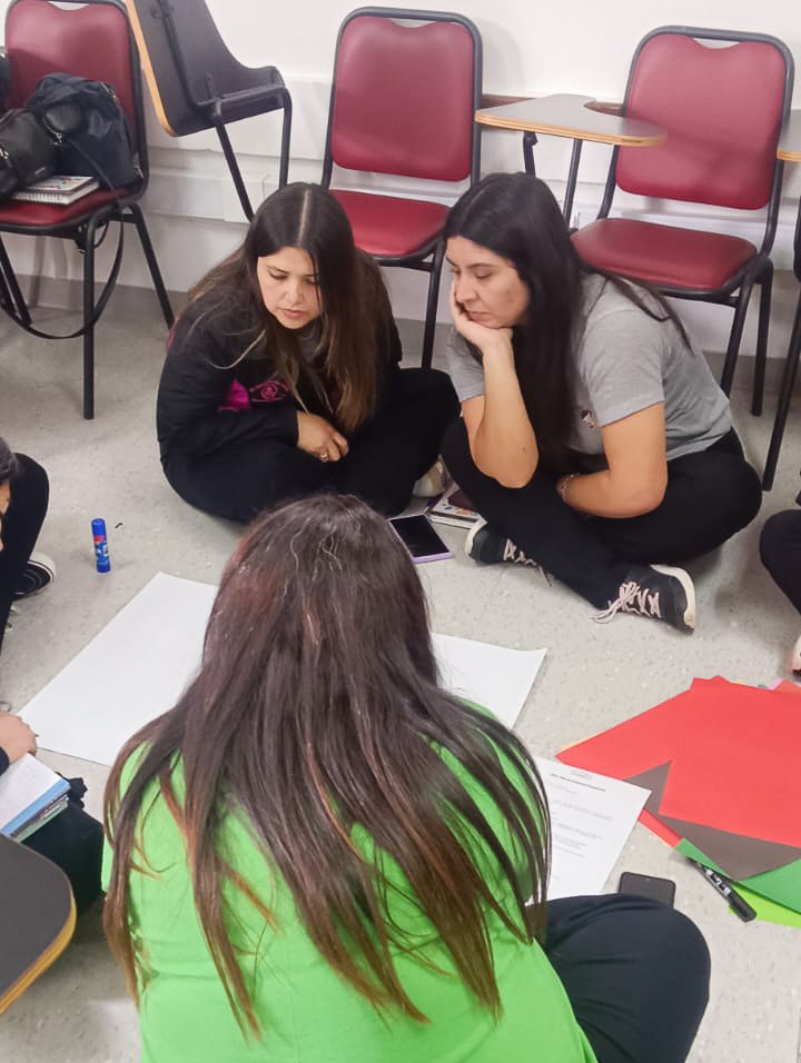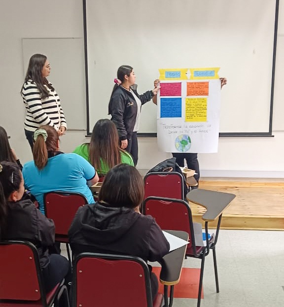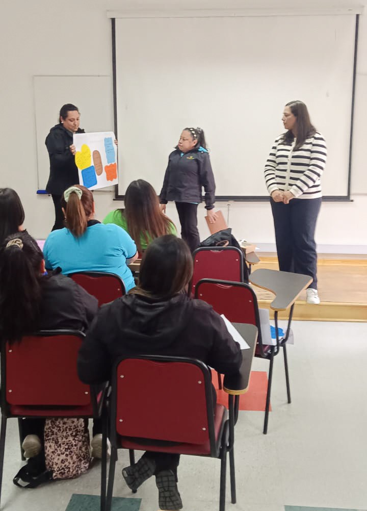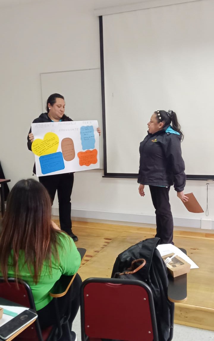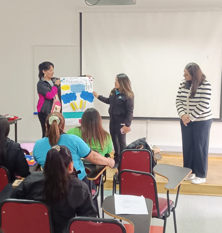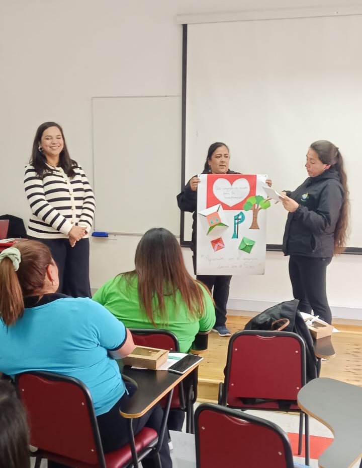 A continuación, las participantes dieron paso a un taller colaborativo, en el cual los equipos —formados por funcionarias de ambos jardines infantiles— elaboraron afiches que reflejaron sus ideas, experiencias y compromisos en torno a la implementación del Plan de Desarrollo.
