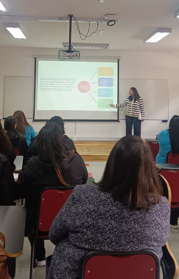 El encuentro comenzó con una oración guiada por la encargada de pastoral del Jardín Infantil Providencia, momento de reflexión que permitió disponer los corazones para el trabajo posterior. Seguidamente, se desarrolló una exposición sobre el trabajo de la Red Educacional Providencia y su modelo pedagógico, destacando su papel como hoja de ruta que inspira la acción educativa, formativa y evangelizadora, en coherencia con el carisma de la Congregación de las Hermanas de la Providencia.