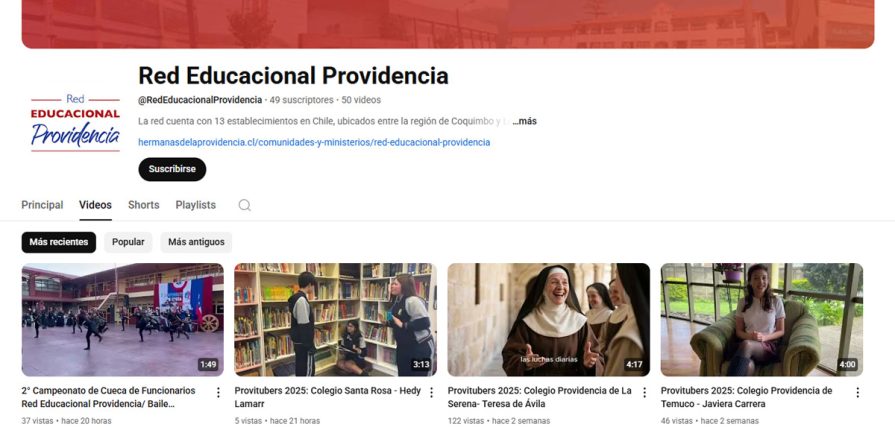¿Ya conoces el canal oficial de YouTube de la Red Educacional Providencia? Este es un espacio donde las comunidades educativas de la Red comparten su talento, creatividad y compromiso con el Sello Providencia, celebrando la vida, la espiritualidad y el liderazgo que nos une a lo largo del país.